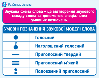Звукову схему слова можна написати або ж викласти зі спеціального дидактичного матеріалу – звукових фішок чи карток.