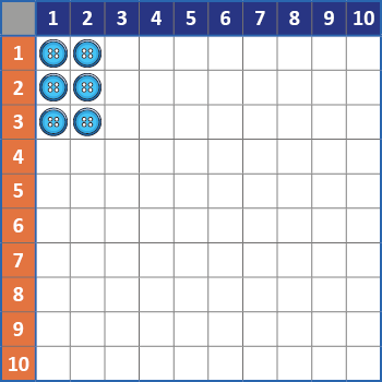 - Розпочніть вивчення таблиці множення з пояснення принципу множення, використовуючи порожню й заповнену таблицю Піфагора. А також дрібні однотипні предмети (намистини, помпони, кубики lego, фішки чи ґудзики). Що значить 2 · 3? Розкладіть ґудзики на 6 клітинок. Це продемонструє дитині результат множення наочно.