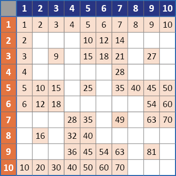 Ця таблиця продемонструє, які саме числа доведеться запам’ятати. За її допомогою можна робити різні завдання. Наприклад, заповнювати уже вивчені добутки чи шукати симетричні клітинки.