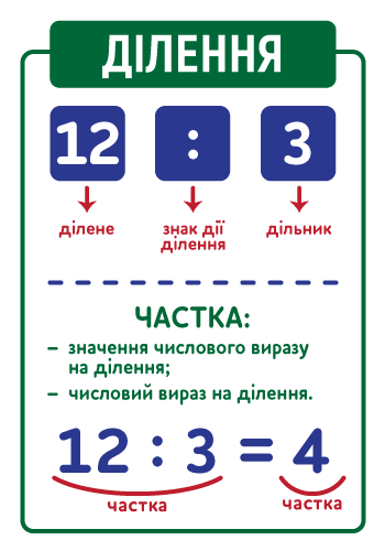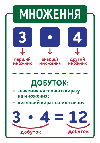- щоб знайти значення числового виразу, що одночасно містить множення чи ділення та інші дії, слід дотримуватися правила порядку виконання дій у числовому виразі: спершу множення та ділення у порядку їх запису, далі додавання та віднімання у порядку їх запису;