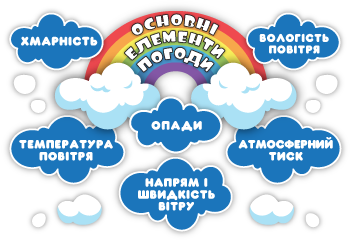 • ознайомте дитину з термінологією, що пов'язана з погодою (атмосферний тиск, вологість повітря, вітер, хмарність, температура, опади тощо). Пояснюйте значення цих термінів і як вони взаємопозв'язані;