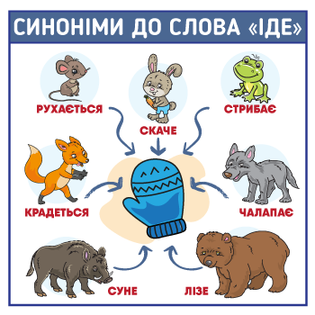 Запропонуйте дитині замінити в реченні деякі слова синонімами. Таким чином можна навіть спробувати прочитати невелике оповідання чи казку. Підготуйте уривок тексту: підкресліть слова, які можна замінити синонімами. І нехай дитина у процесі читання відразу пробує замінювати підкреслені слова синонімами. Непросте, але цікаве завдання. Наприклад, у такий спосіб можна прочитати казку «Рукавичка».