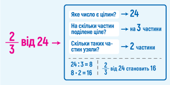 Отож, як знайти 2/3 від 24?