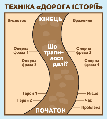 Опорні слова можна писати на імпровізованій дорозі історії, яка допоможе дитині швидко переказати прочитане.