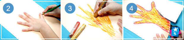 Спершу дитина обводить свою руку сама або з допомогою старших. В аплікації контур руки стане стовбуром дерева з гілками. "Стовбур" треба розфарбувати, вирізати і наклеїти на чистий аркуш.
