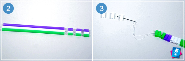 На нитку вище "гірлянди" нанизуємо цілу трубочку через отвір, у вертикальному положенні.