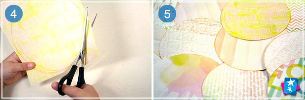 Нехай дитина обведе блюдце, щоб отримати на аркуші рівне коло. Для одного гарбуза треба взяти 10 аркушів паперу. Дайте малюку вирізати круглі елементи, якщо треба, поділіть роботу на двох.