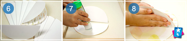 Зігніть кожне коло посередині. Змастіть клеєм одну половинку, прикладіть друге зігнуте півколо і притисніть. Відкладіть в сторону до висихання клею.