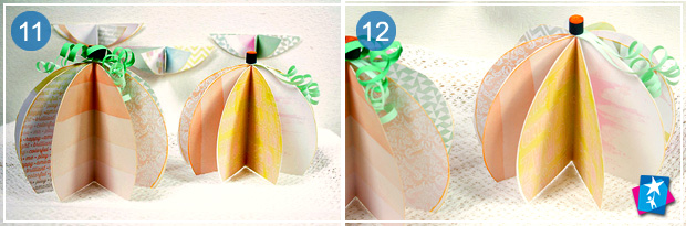 Витвір починає нагадувати гарбуз — це вже об’ємна фігура. Гострими ножицями відріжте декілька сантиметрів від низу фігури, щоб з'явилася стійка основа: гарбузи мають впевнено стояти на ній.