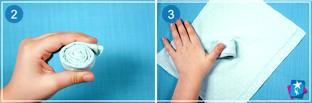 Оберіть тканину, яку використаєте для обличчя мотанки. Гарно виглядає як біла однотонна тканина, так і візерунчаста, з дрібним ненав’язливим малюнком. Розгортаємо тканину для обличчя таким чином, щоб вона нагадувала ромб. По центру вкладаємо туго скручений валик, накриваємо. Стараємось розправляти лицьову частину, а всі складки заводити назад.