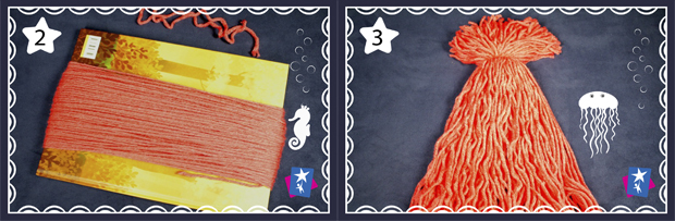 Намотайте пряжу на книгу, по широкій її частині. Розріжте ножицями по прямій лінії в будь-якому місці. Покладіть ваші зібрані докупи нитки у вертикальному положенні, зверху зафіксуйте "чубчик" резинкою, або бантиком, або просто ниткою.