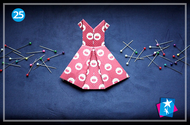 10. Перегортаємо орігамі лицьовою стороною, от і все — ваша сукня готова. Її можна використовувати як розкішний рукотворний декор для колажу, листівки, дитячої аплікації.