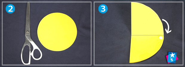 Обведіть диск на аркушах кольорового паперу 16 — 20 разів та виріжте. Якщо бажаєте потренувати дитячі навички роботи з циркулем, попросіть накреслити до 20 кіл з радіусом 5 см. Виріжте отримані кола.