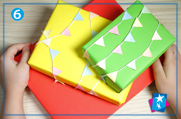 Захопіть дитину створенням подарункових обгорток. Пропонуємо яскраву упаковку з прапорцями