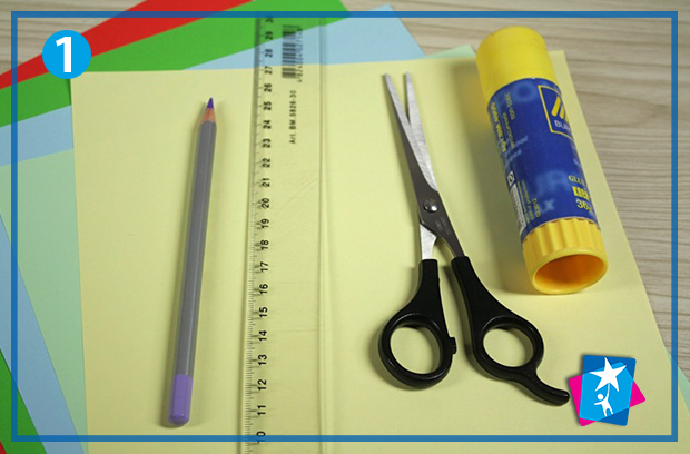 Для створення основи беремо кольоровий картон 7х29 см, кладемо у вертикальне положення. Створюємо розмітку знизу вгору: по довшій стороні відмічаємо крапками 6 см, і ще по одному сантиметру сім разів. З цих крапок проводимо горизонтальні лінії по тильній стороні основи. Згинаємо лінії згину в обидва боки, щоб зробити картон більш гнучким.