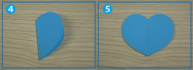 Вирізаємо квадрат 7х7 см із кольорового паперу. Складаємо навпіл. Намічаємо контури половини серця і вирізаємо, розгортаємо фігуру. Таких елементів-сердечок має бути сім.