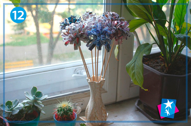 Тепер почніть розправляти кожну пелюстку: просто пройдіться пальцями в різних напрямках, тримаючи між вказівним та великим по одній пелюстці. Всією долонею надайте квітці форму. Можете зупинитися на одному об’єкті або виготовити цілий букет квітів із паперу.