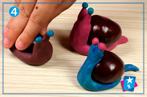 Під час уроку дитячої творчості можемо позмагатися на швидкість. Хто зробить більше симпатичних равликів із пластиліну з каштановим будиночком?