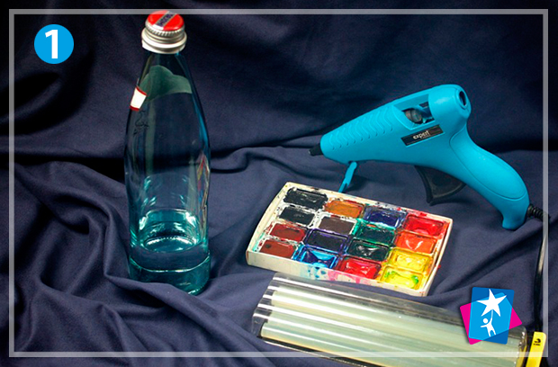 Пропонуємо додати фактури скляній пляшці за допомогою термоклею та розфарбувати об'єкт