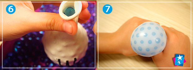 Після гри наповніть здуту повітряну кульку гідрогелем. Сам процес заповнення корисний для розвитку моторики і координації рухів. Після наповнення, добре зав’яжіть у вузол вільний кінець кульки. У вас в руках ефективна іграшка-антистрес: монотонно переминаючи вміст та надавлюючи на кульку в різних місцях, власник такої іграшки заспокоїть нерви, зосередить увагу і розслабиться.