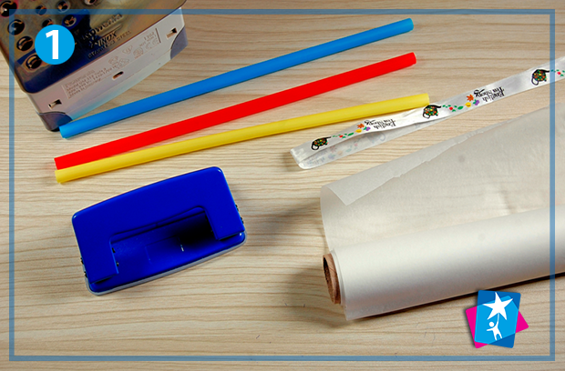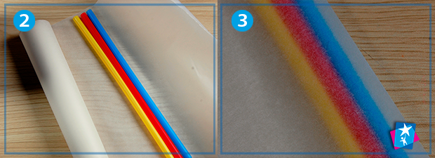 Складіть вдвоє аркуш пергаменту для випічки, вкладіть всередину три трубочки для коктейлів різних кольорів. Вони мають розміщуватися близенько, торкатися одна одної. Накрийте трубочки пергаментом, пройдіться зверху розігрітою праскою.