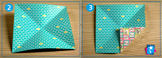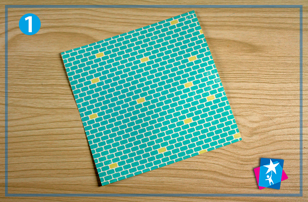 Візьміть паперовий квадрат 20х20 см. Добре, якщо папір матиме з кожної сторони інакший колір або візерунок. Дуже міцний папір не підійде для дитячого орігамі, бо з ним тяжче працювати.