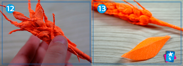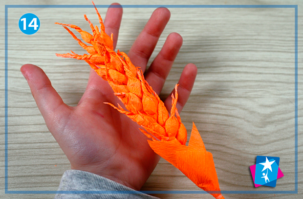 На фото 13 ви бачите вирізаний листочок, який треба приклеїти на стеблину в кінці роботи. Ось і все — симпатичний пухкий колосок готовий. Вдалої творчості!