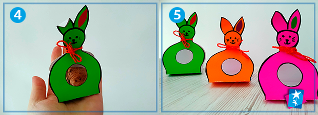 Мінімум матеріалів та зусиль — і ви отримаєте чудові маленькі бонбоньєрки для упаковки солодощів та горішків. А потім можна розважити малюків пошуком подарунків від зайчика. Всередину вухастих коробочок покладемо смачні сюрпризи: горіхи, цукерки, печиво. Ця запозичена традиція дуже подобається дітям, тому що свято перетворюється на цікавий квест.