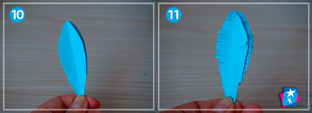 Фото 8—9—10—11. А тепер накресліть олівцем допоміжну лінію, як на фото 8. І виріжте по ній контур пелюсток. Розгорніть. Пройдіть по краях ножицями, створюючи бахрому.