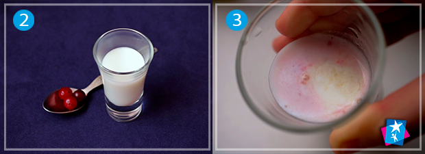 Налийте молоко у невелику ємкість. Видавіть туди сік та спостерігайте, як під дією кислоти зміниться структура з однорідної на неоднорідну. Отримане таким чином кислотне середовище може негативно вплинути на травлення. Але не треба плутати швидке згортання молочного білку під дією кислот з натуральним повільним згортанням при розмноженні молочнокислих бактерій у теплі. У другому випадку створюється кисляк, який є корисним та добре засвоюється організмом.