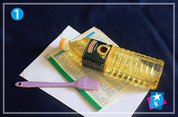 На тарілку покладіть чистий білий аркуш А4. Крапніть олією на папір, а далі силіконовим чи звичайним пензликом розмажте пляму. Вийде прозоре віконце — його добре видно на просвіт, але не тільки.