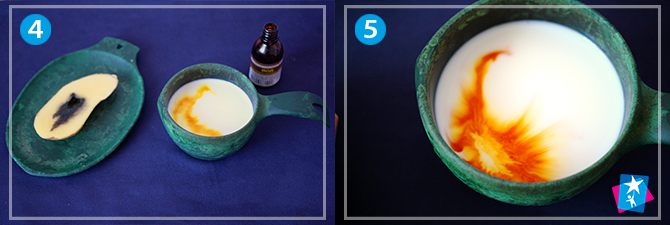 А чи є він в молоці, виробник якого запевняє, що в складі тільки молоко коров’яче незбиране та молоко знежирене? Дослідимо. Крапнемо йод та подивимося, що станеться. В нашому досліді йодова пляма розтеклася і залишилася оранжево-коричневою. Тобто, можна зробити висновок, що молоко штучно не загущувалося крохмалем.