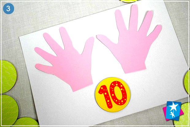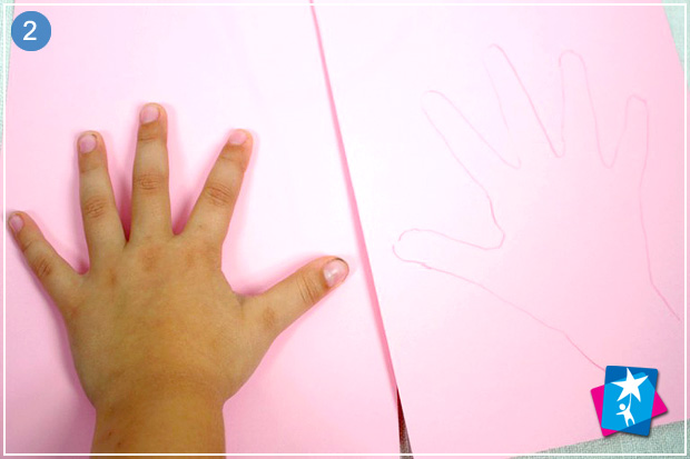 Обведіть ручки дитини на аркушах кольорового паперу. Виріжте по контуру.