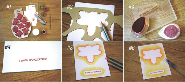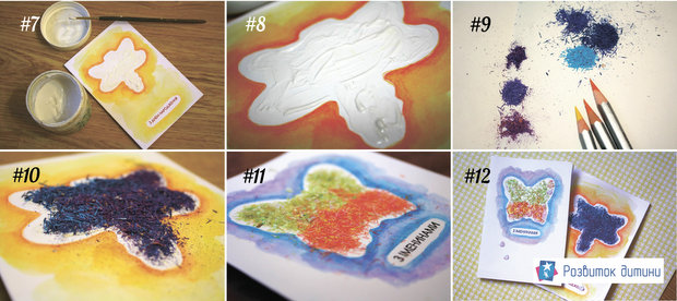 Як бачите, зовні проста листівка може виконуватись кількома етапами. Якщо ваша дитина братиме активну участь в творчій роботі, то зрозуміє принципи взаємодії різних матеріалів і фактур та зможе застосовувати використані прийоми у майбутньому.