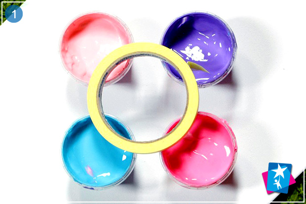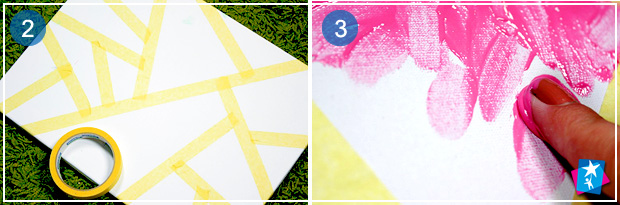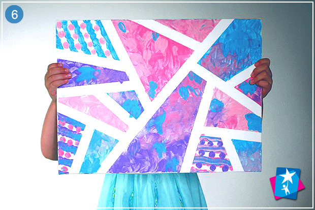 Візьміть малярну стрічку і окресліть нею трикутні ділянки всередині полотна. Невеликі області дитині буде легше зафарбовувати, крім того трикутники можуть стати основою гармонійної і динамічної композиції.