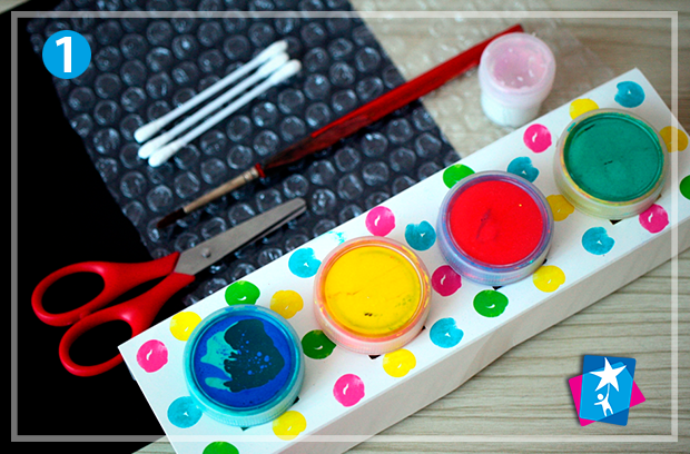 Нам знадобиться темний папір, пухирчата плівка, ножиці, фарби, пензлик, ватні палички та хороший настрій