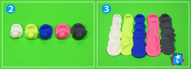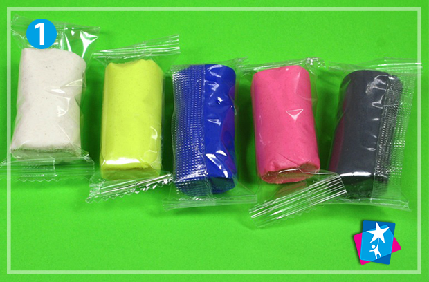 Дістаньте з упаковки і розімніть кольорове тісто для ліплення, відчуйте і опишіть його фактуру. Формуйте маленькі кульки і натискайте на них пальцем — вийдуть мазки, за допомогою яких буде створюватися композиція.