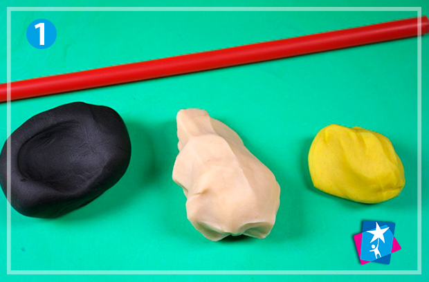 - пластилін трьох кольорів — жовтий, білий, чорний або сірий;