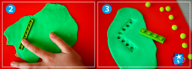 Розкачайте шар пластиліну. Дайте дитині поекспериментувати з відтисками лего-блоків різної довжини на м'якій масі. Коли малюк розбереться, що до чого, можете починати викладати букви.