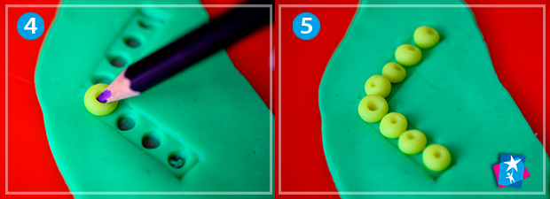 Коли ви знімете конструктор, то отримаєте контур з вм’ятинами. Їх треба заповнити кульками контрастного кольору — так літери виглядатимуть яскравіше і цікавіше. Кульки зручно переносити гостро заточеним олівцем, таким чином вони перетворяться на бусини.