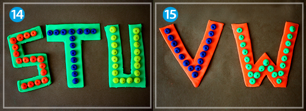 Після заповнення серединки треба вирізати ножиком або стеком кожну букву по контуру, трохи відступаючи. Отримаємо симпатичну об'ємну абетку: коли вона підсохне, можна викладати слова і речення.