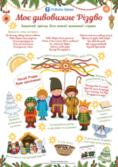 Різдвяний комплект містить чеклист святкових розваг на зимові канікули та шаблони для створення паперових саморобок — традиційних різдвяних прикрас. Пропонується 10 цікавих завдань-активностей (вивчити колядку, зліпити вареник, скуштувати кутю, вивчити різдвяне віншування, виготовити паперовий вертеп-шопку, зробити Різдвяну зірку, прикрасити вікна витинанками тощо), які збагатять знання дитини про зимові українські традиції, допоможуть відчути дух народної культури та долучитися до сімейних різдвяних звичаїв. У комплекті є тексти трьох колядок, текст традиційного привітання-віншування, усі необхідні шаблони для виготовлення паперових виробів, згаданих у чеклисті. Матеріали стануть незамінними, щоб цікаво, творчо, корисно й змістовно підготуватися до свята та провести зимові канікули в руслі українських різдвяних традицій.
